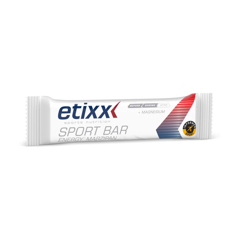 De Etixx Energy Marzipan is een pure, hoog kwalitatieve marsepeinreep die verrijkt is met magnesium en 31g koolhydraten bevat per bar. Ze leveren niet alleen de nodige energie (via 31 g koolhydraten per reep) voor de beste prestaties, maar bevatten ook ±10 % meer vet (voornamelijk onverzadigd vet) dan de Etixx Energy Sport Bars. Daarom zijn ze ideaal tijdens het eerste deel van langdurige inspanningenvan lage intensiteit.